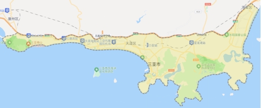 (一)G98环岛高速(含)-港口公路(含)以南、海丰路(含)以西与三亚市南行政界线围合的区域,约485.45km。