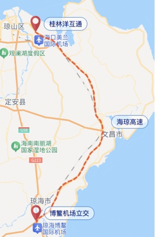 桂林洋互通-英城互通-博鳌机场立交路段,约117公里。